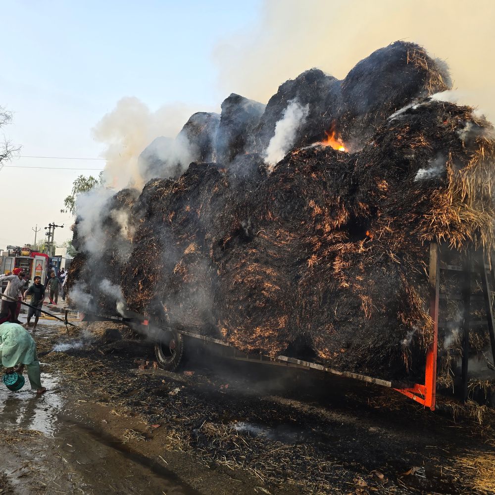 ृ पीछे से आ रहे लोगों ने शोर मचाया तो ड्राइवर कूद कर भागा गांव के लोगों ने ट्रॉली में आग लगते देख चालक देवी लाल को सूचना दी, जिसके बाद वह भागकर अपनी जान बचाने में सफल रहा। आग तेजी से फैल गई। सूचना मिलने पर अबोहर से दमकल विभाग की दो गाड़ियां मौके पर पहुंचीं और आग बुझाने का प्रयास शुरू किया। पीछे आ रही दूसरी ट्राली बाल बाल बची आग बुझाने के प्रयासों में शिरोमणि अकाली दल द्वारा लोगों को दिए गए पानी के टैंकरों का भी उपयोग किया गया। बताया जा रहा है कि यह पराली राजस्थान ले जाई जानी थी। एक अन्य पराली से भरी ट्रॉली भी साथ जा रही थी, लेकिन वह पहले निकल जाने के कारण बच गई।