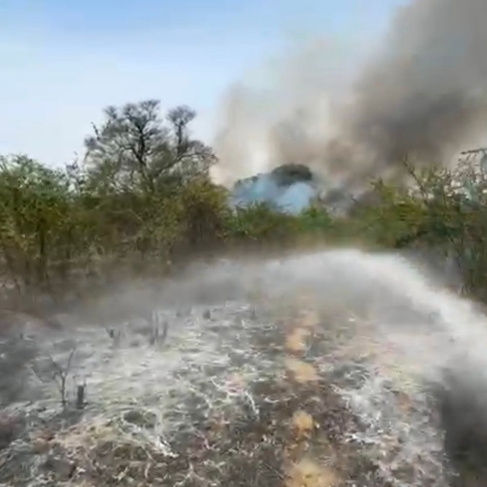 उकलाना में रेलवे स्टेशन के पास लगी आग:गर्मी के कारण सुखी झाड़ियां जली, फायर ब्रिगेड की टीम ने पाया काबू