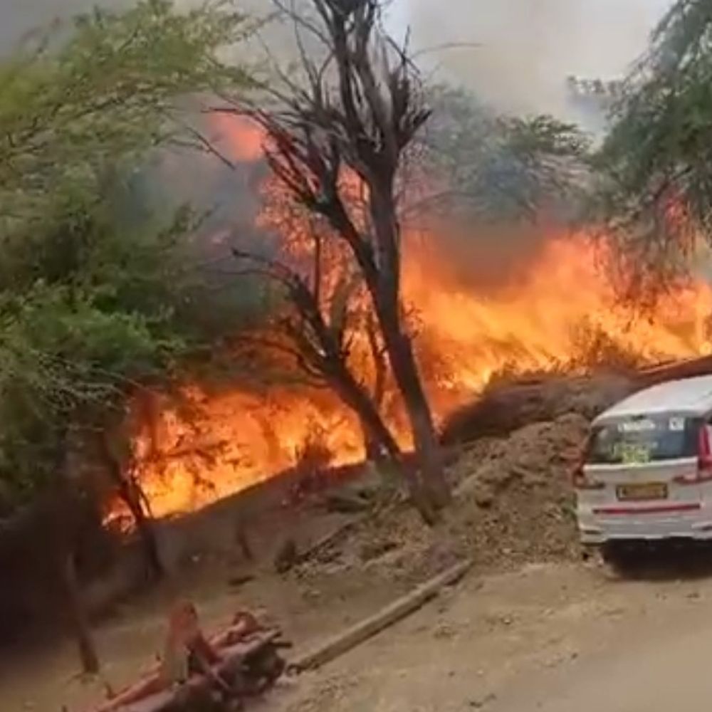 नूंह में छप्पर में लगी आग:एक भैंस की मौत, सैकड़ों क्विंटल भूसा राख, एर्टिगा कार जली
