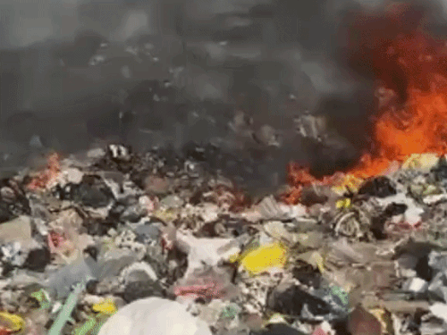 हांसी में डंपिंग स्टेशन में लगी आग:जेसीबी मशीनों से कचरा हटाया, गेहूं की फसल को लेकर किसानों में हड़कंप