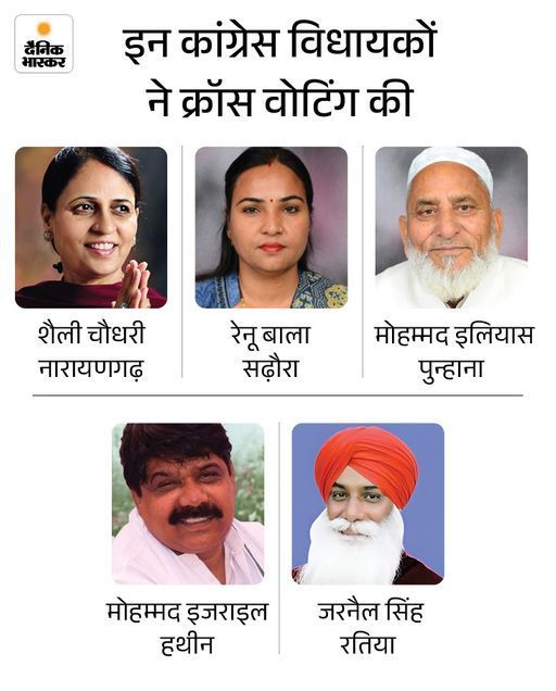 राज्यसभा चुनाव में क्रॉस वोटिंग करने वाले 5 MLA सस्पेंड:हरियाणा कांग्रेस की सिफारिश पर हाईकमान का एक्शन; जरनैल बोले-एकतरफा कार्रवाई, दो ने कहा-फैसला मंजूर