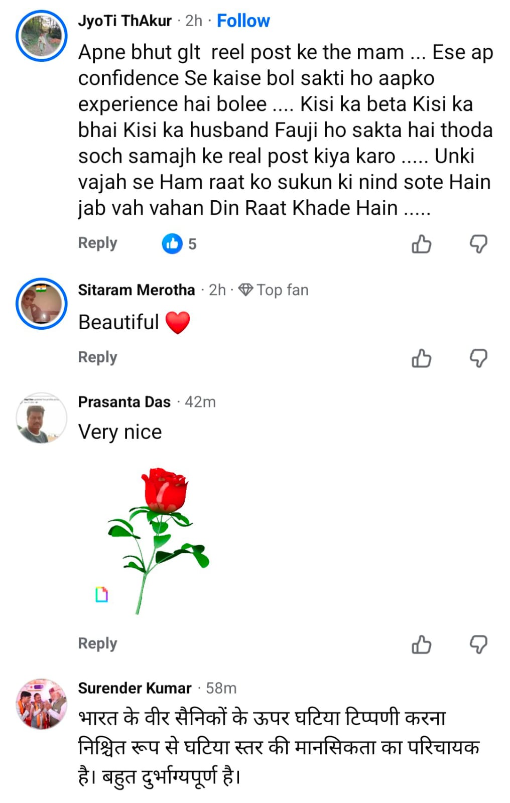 सोशल मीडिया इन्फ्लुएंसर इशिता पुंडीर ने फौजियों पर टिप्पणी की है।